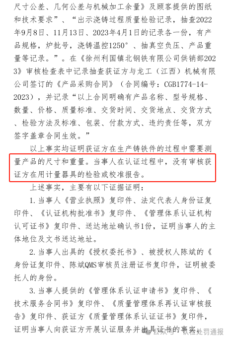 近日,徐州市铜山区市场监督管理局发布行政处罚决定书,江苏九州认证有限公司因在认证活动中:①未验证获证方不符合项纠正措施的有效性、②没有审核获证方在用计量器具的检验或校准报告等原因。被处罚款9.5万元,没收违法所得7000元。