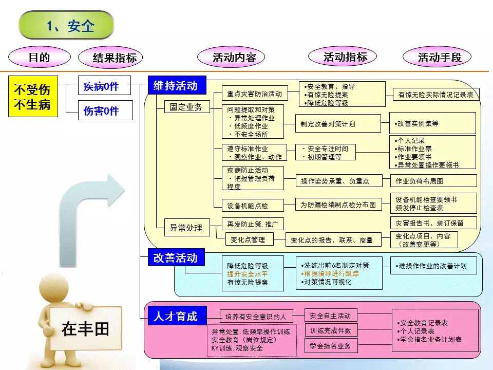 精益管理有七大任务,分别是:安全、质量、生产、设备、成本、人事和环境!有位牛人把这七大任务的流程总结成了7张图,非常精彩,希望能帮到您!